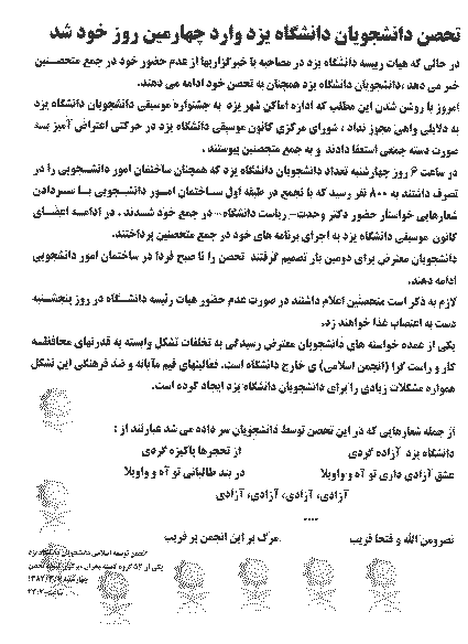 ادامه تحصن در دانشگاه يزد