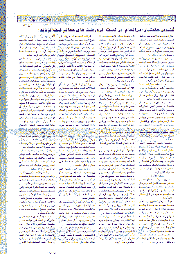 گلبدين حكمت يار سرانجام درليست تروريست هاي جهاني ثبت گرديد