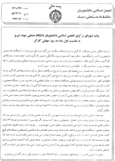 بيانيه تحليلی انجمن اسلامی دانشجويان دانشگاه سهند تبريز