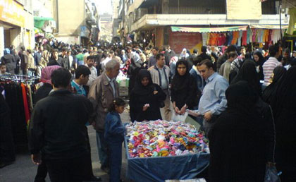 جلوخان مغازه ها که نیمی از آن را گرفته و